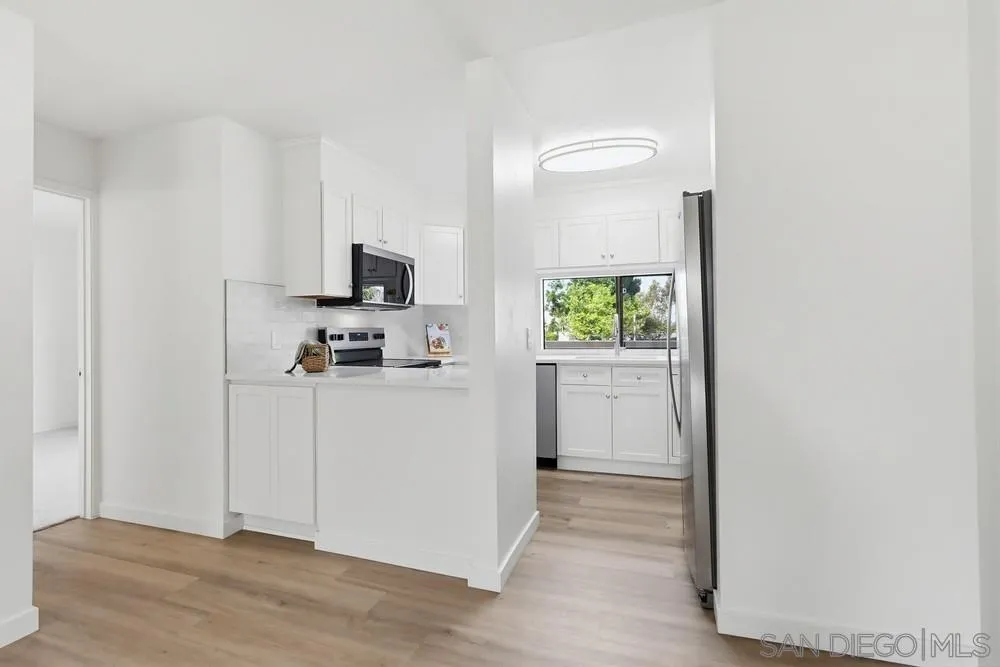 Living is easy with $313/month HOA dues, $215 less than nearby units! This remodeled condo has new appliances, flooring, kitchen & baths AND since it's getting hot out there, a brand new Mini Split AC. This single-level home is only 1 floor up with garage directly below and 2 private balconies. Overlooking the pool, the large main bedroom has 3 floor-to-ceiling, mirrored closet doors and an ensuite bath. And, it's the perfect location, with easy access to the 52, 805, 5, and all UTC restaurants & shops!
