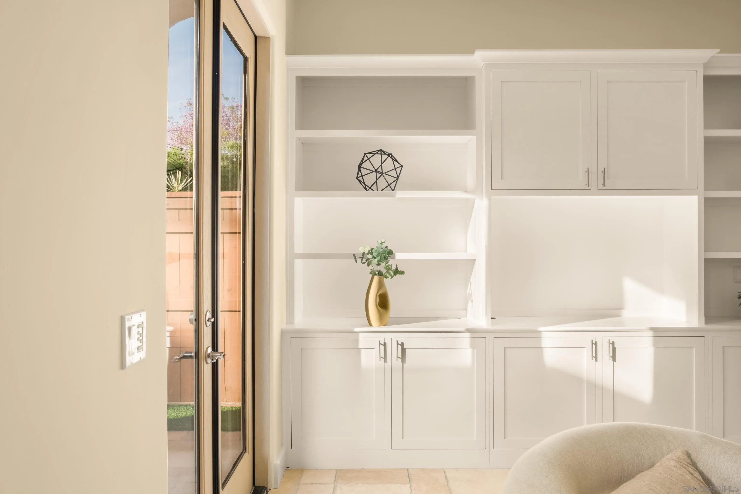 In the heart of Coronado Village, this stunning residence captures the quintessential Coronado lifestyle. Soaring 10-foot ceilings flood the home with natural light, complementing the elegant tumbled travertine flooring throughout the main living areas. The thoughtfully designed kitchen features full-height alder cabinetry, quartz countertops, and stainless steel appliances, ideal for both everyday living and entertaining. Custom built-ins in the living and family rooms add a refined, sophisticated touch. Upstairs, all bedrooms are privately situated, including a spacious primary suite with three closets, a private balcony, and a beautifully appointed ensuite bath. A bright, built-in office or study area surrounded by windows offers the perfect work-from-home setup. Enjoy breathtaking 360-degree panoramic views from the expansive rooftop deck, showcasing Coronado, the iconic bridge, and city skyline. Additional highlights include owned solar, a tankless water heater, and a two-car garage with convenient alley access, an always sought-after feature in Coronado.