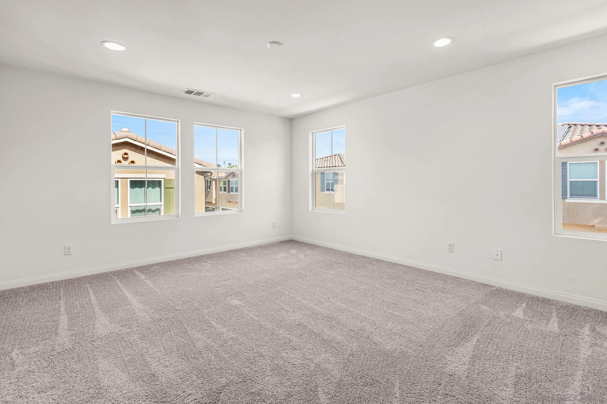 Incredible opportunity to own a like-new, fully upgraded corner-lot home in a highly sought-after pet-friendly Vista community. This recently built home features over $38,000 in builder upgrades, including hardwood flooring, quartz countertops, designer tile, and upgraded cabinetry with soft-close features, plus a finished outdoor space with lawn and BBQ area. The open-concept layout offers a light-filled living space, modern kitchen with stainless steel appliances and large island, and a convenient downstairs half bath. Upstairs, a versatile loft separates the primary suite from the additional bedrooms and laundry, creating both privacy and flexibility. The primary suite includes a walk-in closet, ensuite bath, and its own thermostat, with dual climate control throughout the home. Enjoy a private patio, 2-car garage with EV charger, owned solar, and in-home laundry. Located directly across from a tot lot with play structure, within a welcoming community featuring a dog run and EV charging stations. Just down the street from schools and just minutes from the 78 freeway, this home offers the perfect blend of modern upgrades, thoughtful design, and everyday convenience.