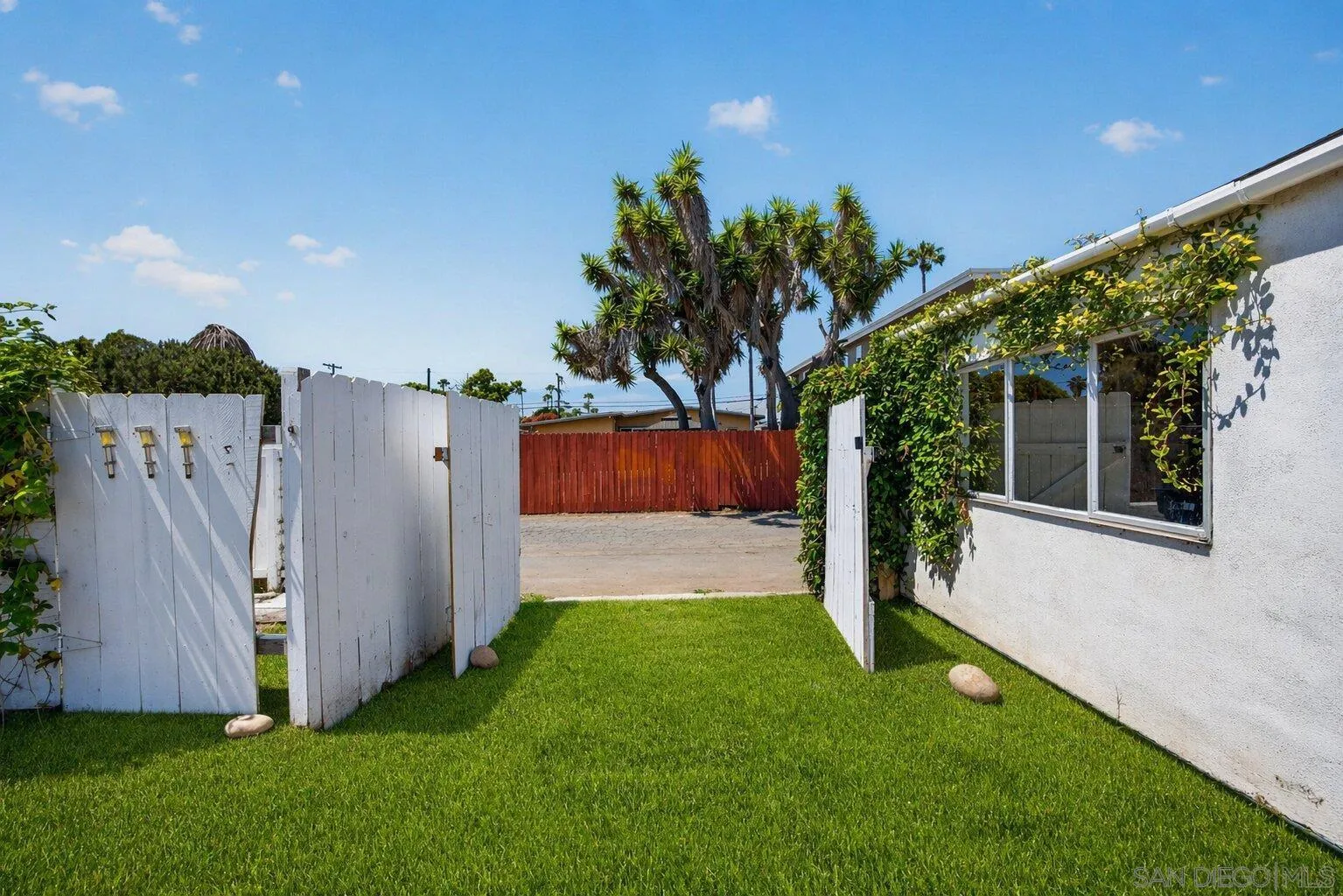 Coastal Investment Opportunity | House Hacking | ADU Potential + Alley Access. Fully upgraded coastal home with income and development potential located WEST of the 5 in one of Oceanside’s most walkable neighborhoods just a short stroll to the beach, pier, shops, and restaurants. This 3-bedroom, 2.5 bath home offers a versatile layout with two bedrooms featuring PRIVATE exterior entrances, ideal for house hacking, rental INCOME, or multigenerational living. A primary bathroom has been added, creating a functional 2-bath configuration. Major system upgrades include a new energy-efficient cool roof, central HVAC system with A/C and heating, updated electrical with recessed lighting, dual-pane windows, and hydro-jetted plumbing. Additional improvements include newly added drainage, upgraded fencing with security features, and a dedicated outdoor laundry room with hookups and sauna-ready electrical. The exterior has been enhanced with new concrete work, low-maintenance landscaping, and expanded parking, an uncommon feature in this highly walkable coastal area. Situated on a ~5,948 sq ft lot with ALLEY access and RS zoning, the property offers development potential with approved plans in progress for a garage ADU and additional units with SB9 (buyer to verify). Significant upfront improvements and development groundwork already completed saving the next owner both time and money. Images have been digitally altered for marketing purposes. The original, unaltered images, plus available UPGRADES and BUILDING PLANS, are available here: https://bit.ly/4culeAw