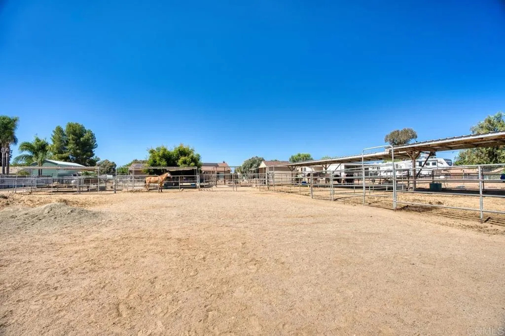 PRICE IMPROVEMENT!! Motivated Seller!! Welcome to this beautifully upgraded property, thoughtfully designed for comfortable living and equestrian, or animal use. This ranch-style setting home combines modern amenities, energy efficiency, and extensive outdoor features. Inside, the home boasts custom-built bathroom cabinetry with maximum storage, and elegant travertine countertops. The kitchen is enhanced with granite tile counters, a brand-new refrigerator, microwave, and a spacious pantry complete with ShelfGenie pull-out drawers and organizers. Dual-paned windows, a whole house vacuum system, a newer water heater, a new heater, and a Mirantec garage door opener with a newer garage door ensure both comfort and efficiency. Energy features include 26 solar panels, 2 Tesla Power walls, a Tesla EV charger, and a new Lopi wood-burning stove, offering sustainable living without compromise. A home security system also adds peace of mind. Outdoors, the property is fully fenced and cross-fenced with a powered front gate. Equestrian enthusiasts will love the impressive 108-ft steel beam custom horse structure, 6 oversized 24x24 corrals, an additional 12x24, a 54-ft round pen for exercising, 2 wash racks/grooming stalls, and a hay barn with electricity. A 12x10 wood shed/tack room adds convenience. The backyard is perfect for entertaining or relaxing, featuring a covered patio, a sparkling in ground-ground pool with a new upgraded variable-speed pump, and raised garden beds for your seasonal plantings. Mature fruit treesolive, grapefruit, lemon, tangerine, lime, avocadoand blackberry