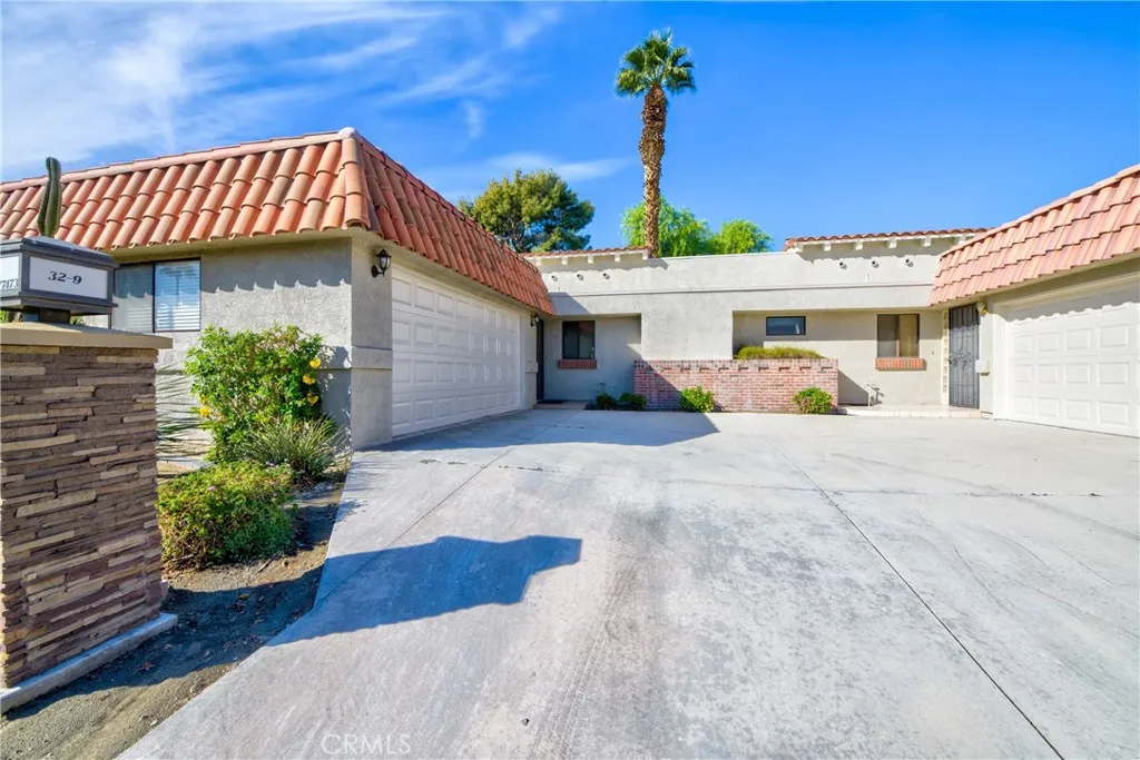 GORGEOUS! upgraded Olympic model located in Palm Desert Resort Country Club, just steps from the pool and spa with relaxing greenbelt and mountain-view surroundings. This beautifully maintained home features an open and bright floor plan with high ceilings, recessed lighting, and large slider that bring in natural light and views of the landscaped grounds. The upgraded kitchen includes granite slab countertops, a spacious center island with cooktop and seating, stainless steel appliances, custom cabinetry with glass inlays, and a warm tile backsplash. The kitchen opens directly to the Great Room, creating a seamless space for dining and entertaining. Tile flooring runs throughout the home with large ceramic tiles laid on the diagonal for a stylish and low-maintenance finish. The split-bedroom floor plan offers excellent privacy. Both bedrooms are spacious with mirrored wardrobe closets. The bathrooms include granite countertops, upgraded fixtures, and tiled walk-in showers. Additional interior features include a newer high-quality water heater and a recently added washer and dryer located in the attached garage. Outdoor living is highlighted by the private back patio with stamped concrete, mature desert landscaping, and wide greenbelt views. A spacious attached garage provides extra storage. Palm Desert Resort C.C. is a guard-gated community offering an 18-hole golf course, lighted tennis and pickleball courts, over 20 pools and spas, and a clubhouse with dining, lounge, and golf shop. The HOA maintains exterior landscaping. This home is ideal for full-time living, seasonal