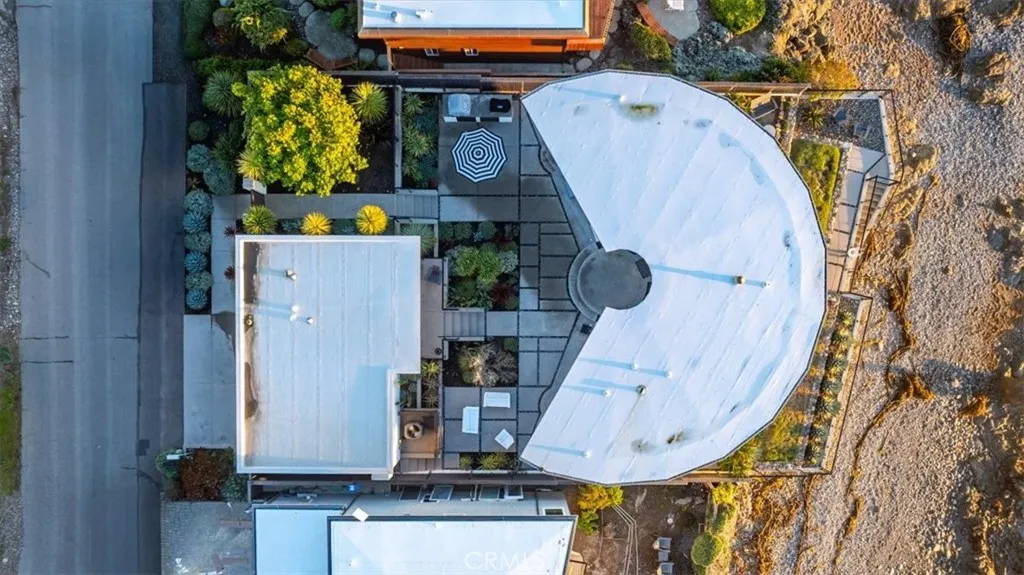 Oceanfront Mid-Century Modern Estate Main Residence and Guest Home Privately set behind a gated entrance on Cambrias coveted Sherwood Drive, this architecturally curated oceanfront estate blends iconic mid-century design with a complete coastal modern transformation and full renovation. The sophisticated single-level main residence embraces dramatic, panoramic ocean and white-water views, while the privately situated guest home, just steps from the waters edge and enhanced by the soothing sound of the surf, offers a serene sense of separation. Between 20202022, the entire estate was re-envisioned and renovated in collaboration with a well-respected architect and custom builder. The home now showcases refined finishes, warm modern materials, and a gallery-inspired aesthetic. Signature mid-century architectural elements including the curved wall, semi-circular glass line, exposed beams, and original floor lines were preserved and enhanced, grounding the homes sculptural presence along the coastline. Inside the main residence: Raised ceilings with exposed beams and expansive picture windows, chef-caliber kitchen with Wolf appliances and waterfall island, custom cabinetry, designer lighting, artisan fixtures, and wide-plank flooring, showpiece gas fireplace, new roof, windows, doors, and refined finishes, new HVAC system with heat and air conditioning, updated plumbing and electrical, new powder bath and discreet laundry area. The guest home mirrors the same sophisticated modern design with its own private entry and beautifully finished interior, an ideal space for hosting or