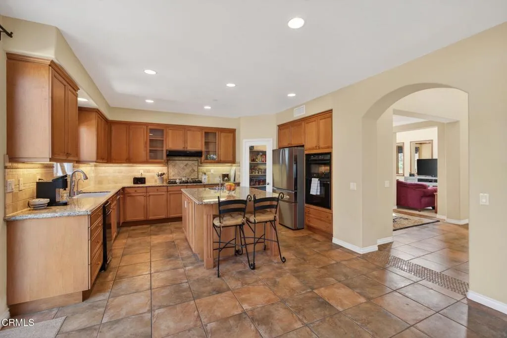 Spacious Spanish Style Former Model Move-In Ready Home located in the desirable Santa Rosa Walk neighborhood. This gorgeous home has 3,181 square feet, 4 Bedrooms, 3 bathrooms. Downstairs has a 4th Bedroom and 3rd bathroom plus an office with built-ins. Roomy living room with 2-story soaring ceilings presents plenty of natural light. Formal dining room for hosting family and friends and direct access to a side patio with a sparkling fountain. Downstairs bedroom and bathroom with large shower is available on the main floor for guests and potential for multigenerational living. Open concept Family room with crackling fireplace and built-ins. Enjoy preparing meals in the Gourmet Kitchen featuring walk-in pantry, breakfast bar, new Stainless Steel Refrigerator and plenty of storage plus a view of the landscaped, private backyard. Dual Zone HVAC. Brand new carpet, new exterior paint and a recent Section 1 Termite Clearance. Upstairs features a Large Primary Suite with his and hers walk-in closets and primary bath with dual vanities, Soaking tub and large tiled shower. Two Upstairs Bedrooms with a Jack-n-Jill bath and an Upstairs laundry room with storage and utility sink. Three car garage-two car parking plus separate one-car garage to use as a workshop or storage. Flexible living areas with ADU potential! Brand new carpet, new exterior paint and a recent Section 1 Termite Clearance. No Mello-Roos and No HOA! Near schools, parks, shopping, and minutes to the popular Ventura Pier, beaches and marinas! *Buyer to verify ADU feasibility with local zoning/building departments.