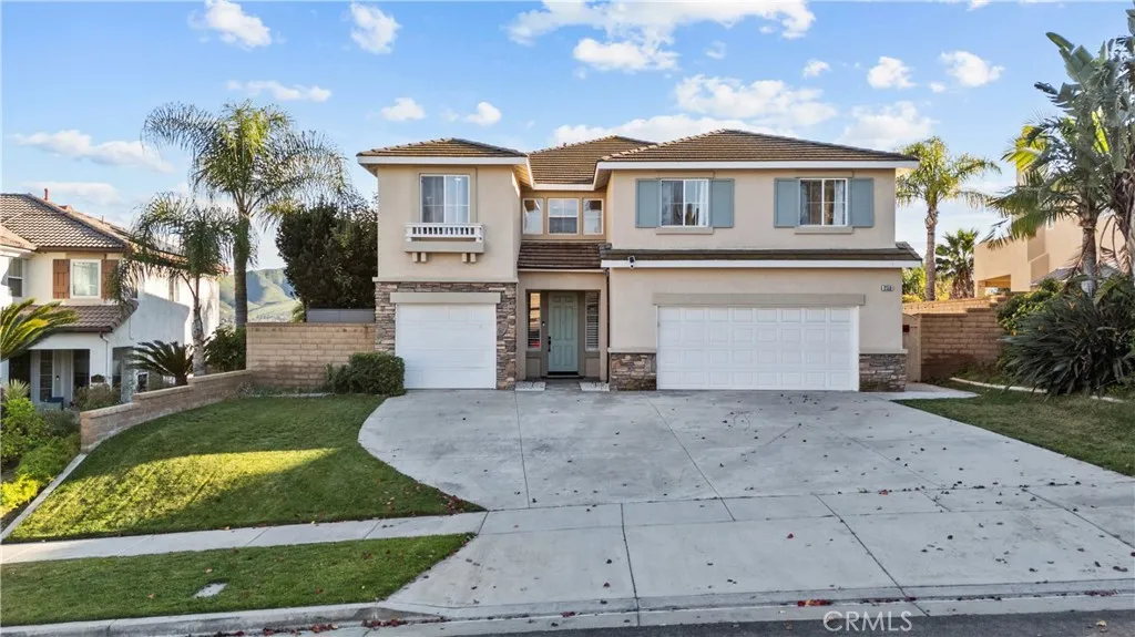Spectacular view home located in the highly sought-after Corona Promenade community, featuring 5 bedrooms plus an expansive bonus room. Set within a beautifully maintained neighborhood where pride of ownership is evident, this home boasts exceptional curb appeal with lush, manicured landscaping. From the moment you arrive, the homes impressive scale and attention to detail are immediately apparent. Recent upgrades include fresh interior paint throughout, brand-new luxury vinyl plank flooring, and elegant plantation shutters. The spacious living room is ideal for family gatherings, while the well-appointed kitchen offers abundant cabinetry, a newer stainless steel double oven, gas cooktop, newer dishwasher, an open trough sink with a commercial-grade faucet, and a convenient center island. The kitchen flows seamlessly into the large dining area featuring a built-in coffee bar, and onward to the inviting family room with a gas fireplace. A highly desirable downstairs bedroom and full bathroom provide flexible living options, along with an oversized laundry room offering exceptional cabinet and storage space. Upstairs, the luxurious primary suite is generously sized to accommodate king-size furnishings and showcases newly installed vinyl windows with stunning city light views. The primary bathroom features a separate shower, soaking jacuzzi tub, and an oversized walk-in closet comparable in size to a bedroom. Three additional upstairs bedrooms, a full bathroom with dual sinks, and ample hallway storage complete the second level. A standout feature is the massive bonus room wit