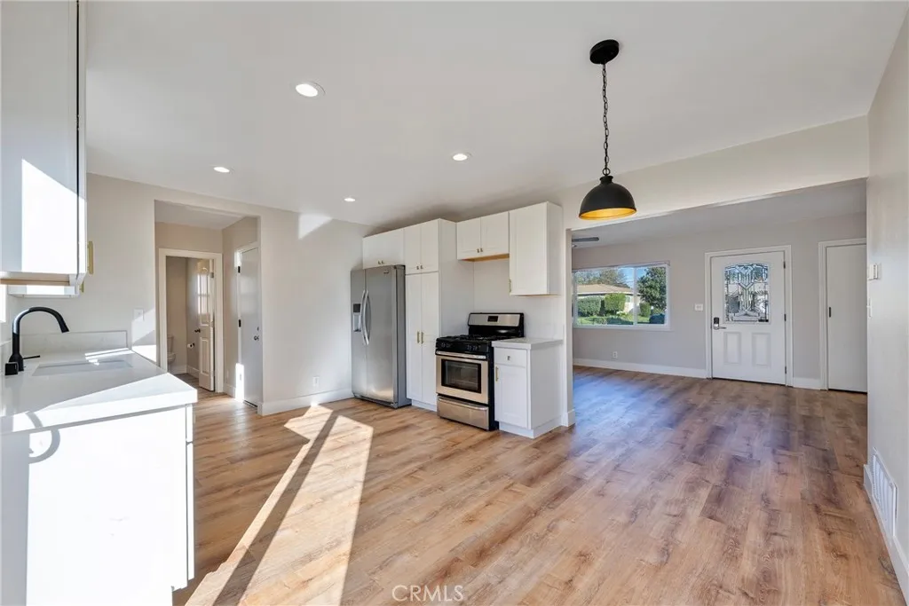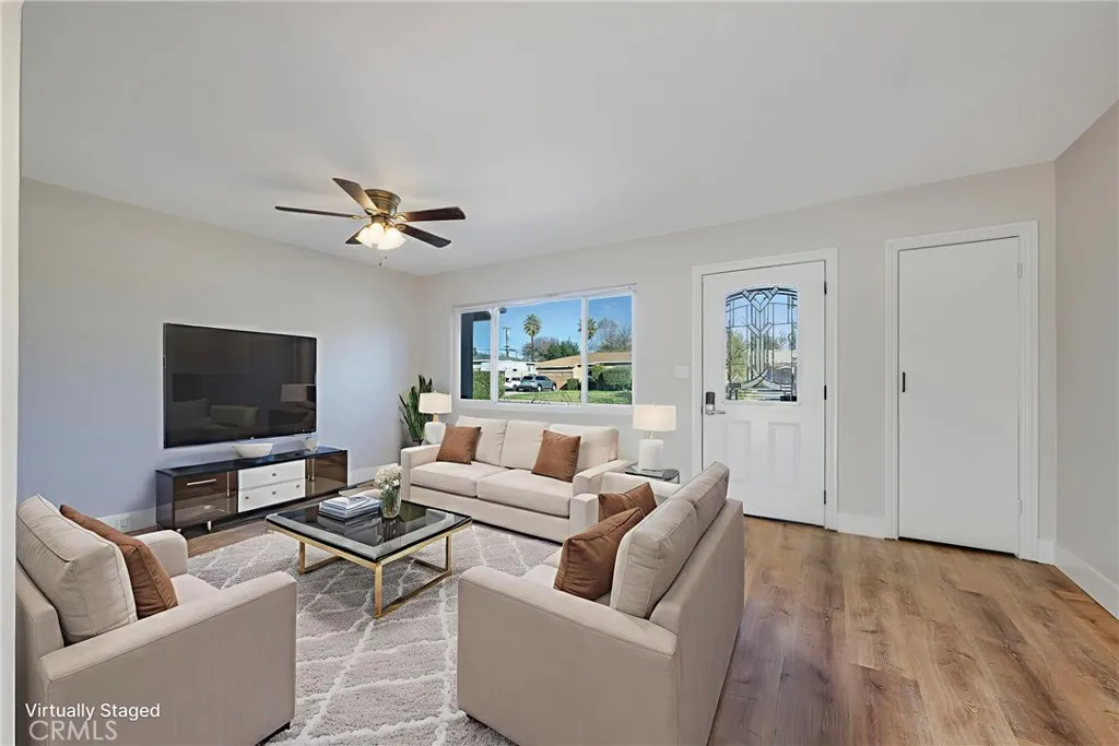Welcome to 8214 Klusman Ave, a completely renovated, move-in ready home located in one of Rancho Cucamongas most desirable neighborhoods. This beautifully updated residence now offers 3 bedrooms and 2 full bathrooms, thoughtfully redesigned with todays buyer in mind. The home has been fully refreshed from top to bottom, featuring all-new flooring and carpet throughout, fresh interior paint, and updated fixtures in every room, creating a clean, cohesive, and modern feel. The kitchen has been fully upgraded with new cabinetry, finishes, and a functional layout ideal for both everyday living and entertaining. Significant system upgrades add long-term value and peace of mind, including a new AC unit, heating system, updated ductwork, and water heater, all installed within the last two years. A newly added full bathroom enhances functionality and value, making this home ideal for families or guests. Outside, the front and backyard have been cleaned up and refreshed, offering inviting outdoor spaces ready for relaxation, entertaining, or personal touches. Mature fruit trees including avocado, peach, orange, and lemon add charm and character to the backyard. Conveniently located near top-rated schools, major shopping and dining destinations such as Victoria Gardens and Ontario Mills, and with easy access to freeways and Ontario International Airport, this home offers an ideal blend of style, comfort, and location. With extensive renovations already completed, 8214 Klusman Ave presents a rare opportunity to own a truly turnkey home. Just move in and enjoy.