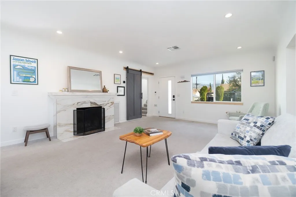 Charming 1932 three-bedroom, three-bath home on historical Cypress Circle, where modern comfort meets original character. Cross the classic brick patio to the front door, and enter into the over-sized living and dining room. This inviting space features mountain views, a dramatic floor-to-ceiling window, a wood-burning fireplace, a built-in bookshelf, and Art Deco details. The expansive window fills the home with natural light and overlooks the lush backyard, highlighted by a mature lemon tree. Just off the main living area, the recently updated kitchen offers newer Samsung smart appliances, quartz counter-tops, an island with seating, exposed brick, Shaker style white cabinetry with self closing hinges, under the cabinetry lighting, and a sunlit breakfast nook perfect for morning coffees. The first floor includes a guest/kids room with mountain views, an updated hall bath, and an over-sized primary suite with mini-split AC. The beautifully remodeled en-suite bathroom features a double shower with four shower heads (two rainfall), pebble flooring, dual sinks, modern and functional touch- sensor LED lighted mirrors and floating shelves. Behind a stylish barn door, stairs lead to the second-story third bedroom. With its own bathroom and mountain views, this versatile space works well as an office, guest suite, older kids room, or second primary.The private backyard offers fruit trees, lawn space, and a large stone fireplace ideal for outdoor entertaining. Additional highlights include recessed lighting, coved ceilings, central heat and AC, a new roof (April 2025), and storage