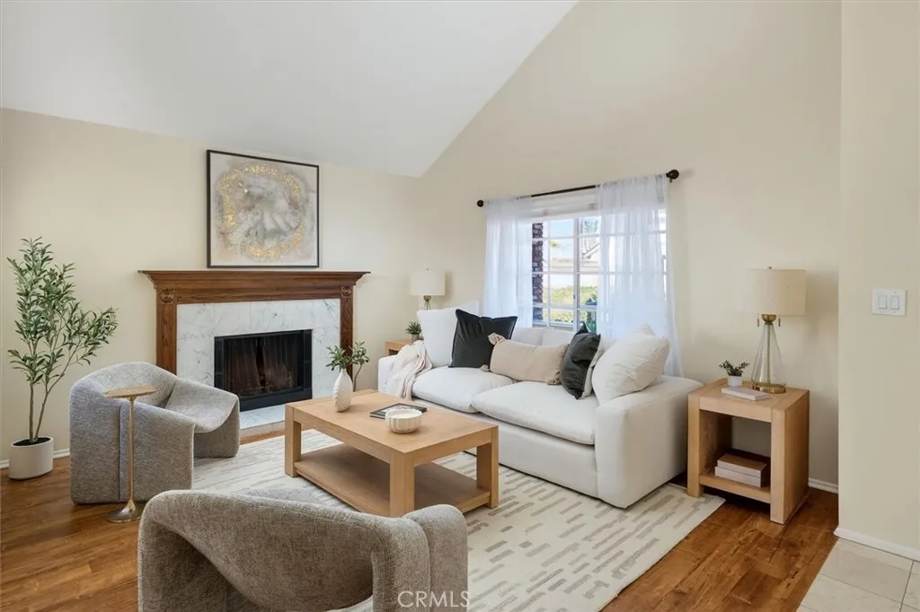 Single story style living with architectural character, a charming front porch, large upstairs loft, pool size backyard, attached two car garage, low HOA, and no Mello Roos in Valencia. This 2 bedroom plus loft, 2 full bathroom home is located in Santa Claritas Behind Granary Square neighborhood and offers both bedrooms and both bathrooms on the main level, creating true one level functionality with flexible bonus space upstairs. The living and dining rooms feature high ceilings with exposed beams and abundant natural light, along with a large sliding glass door that opens to a spacious backyard with patio and room for a pool or outdoor entertaining. The primary bedroom includes an attached bathroom and a sliding glass door with direct access to the backyard. A second bedroom and full bathroom are also located downstairs. An inviting front porch adds curb appeal and everyday livability, while the attached two car garage provides convenience. The community offers pools, parks, playground, and access to Valencias iconic Paseo system with miles of paved, landscaped, and lighted pathways connecting parks, schools, and neighborhood amenities, along with nearby access to Santa Claritas bike path network. Freeway close while still feeling tucked away. Zoned for Valencia Valley Elementary School, Placerita Junior High School, and Hart High School.