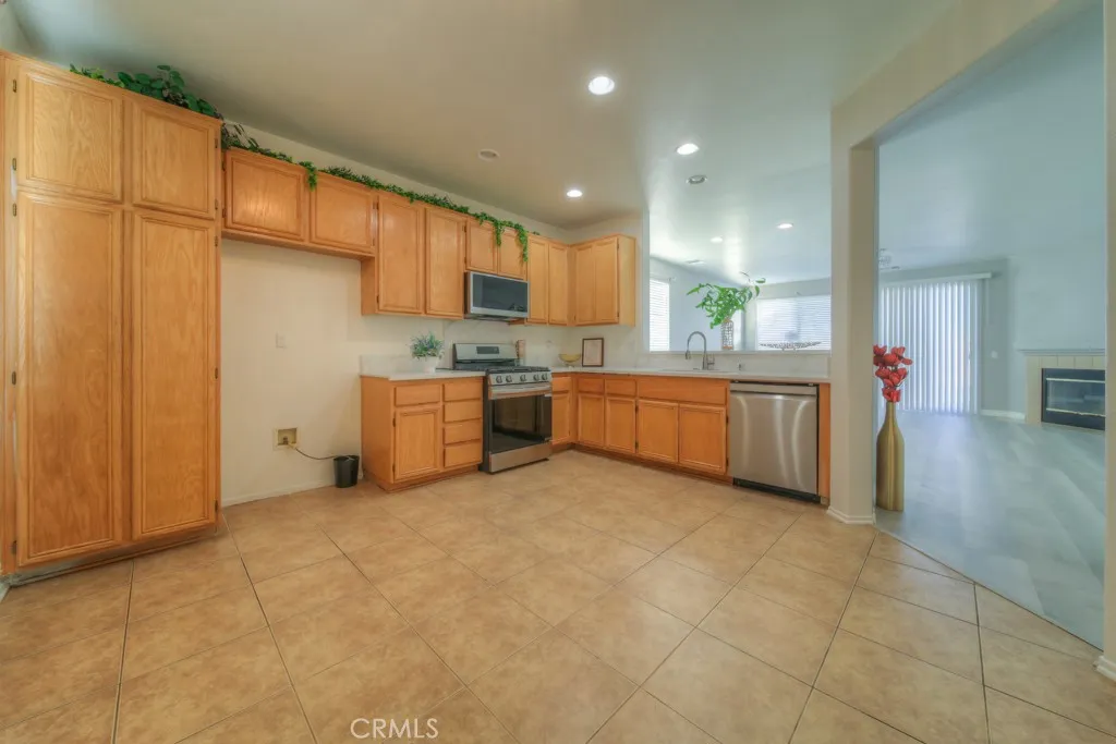 Charming and move-in ready 3-bedroom, 2-bath home located in Adelanto, California!! This inviting residence features new laminate wood flooring, fresh interior paint, and recessed lighting, creating a bright and airy atmosphere throughout. The open great room flows seamlessly into a well-appointed kitchen showcasing oak-tone cabinetry, stainless steel appliances, tile flooring, and a convenient breakfast counter, perfect for everyday living and entertaining. Faux wood blinds are installed throughout the home, and both bathrooms have been tastefully remodeled. The primary bedroom offers a walk-in closet and a walk-in shower for added comfort. Additional highlights include a brand-new furnace, an indoor laundry room, and a spacious garage. Extensive concrete work has been recently completed in the backyard and along the sides of the property, along with durable block and vinyl fencing, providing both functionality and privacy. LOW TAX & NO HOA. This is a must-see home with pride of ownership evident throughout. Buyer to perform their own due diligence and verify all information.