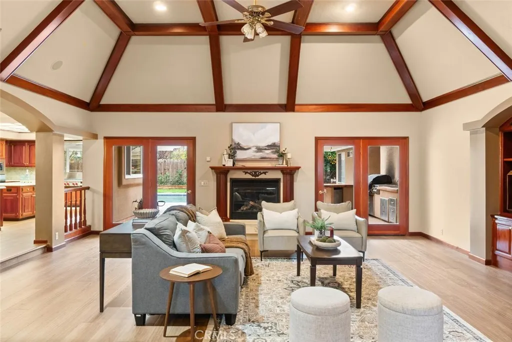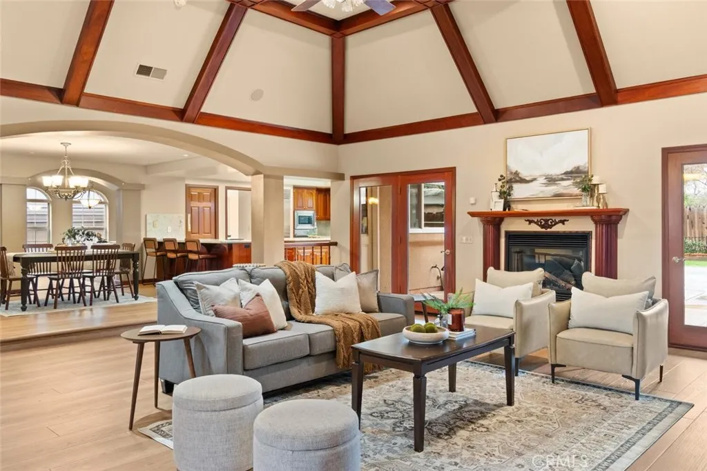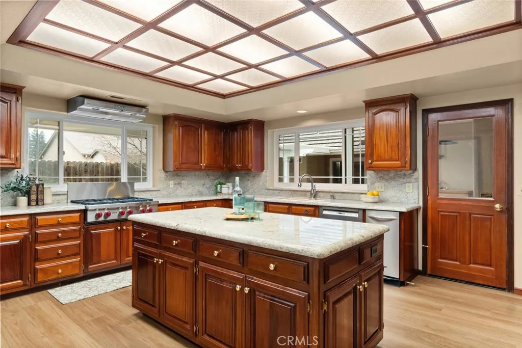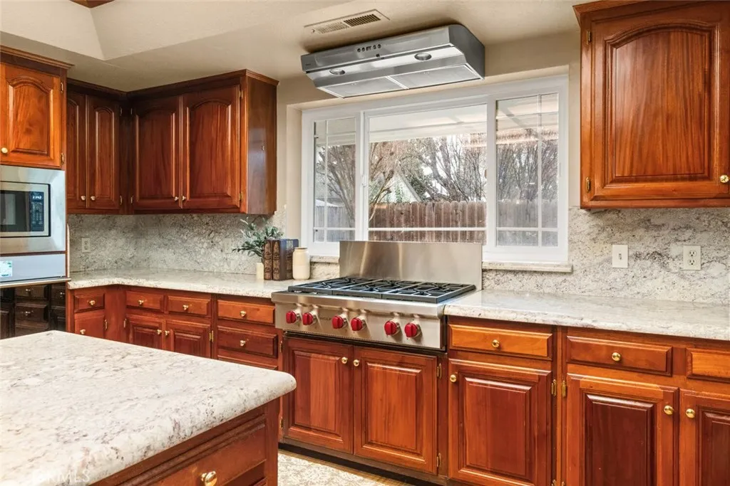 This well-built North Chico home offers thoughtful design, quality finishes, and spaces that truly work for everyday living and entertaining. Inside, youll find new LVP flooring throughout, architectural archways, exposed beam ceilings, and a spacious living room with a cozy fireplace. The kitchen is both functional and stylish, featuring granite countertops, custom wood cabinetry, a Wolf gas cooktop, Sub-Zero refrigerator, large center island, walk-in pantry, and breakfast bar. A formal dining room sits nearby, along with an additional formal living space that adds flexibility for hosting or gathering. A dedicated office with built-in shelving provides a comfortable work-from-home setup. The primary suite offers a private retreat with backyard access, walk-in closets, dual vanities, and a tiled walk-in shower. Three additional bedrooms are generously sized, and the home also includes ceiling fans throughout, an indoor laundry room, and an attached three-car garage. Recent upgrades include a newer furnace, air conditioning system, and water heater, adding peace of mind and efficiency. Out back, the property is designed for year-round enjoyment with a covered patio, Pebble Tec pool, outdoor kitchen and bar, plus a storage shed and garden area. Located in a desirable North Chico neighborhood, this home combines comfort, function, and standout amenities in one complete package.