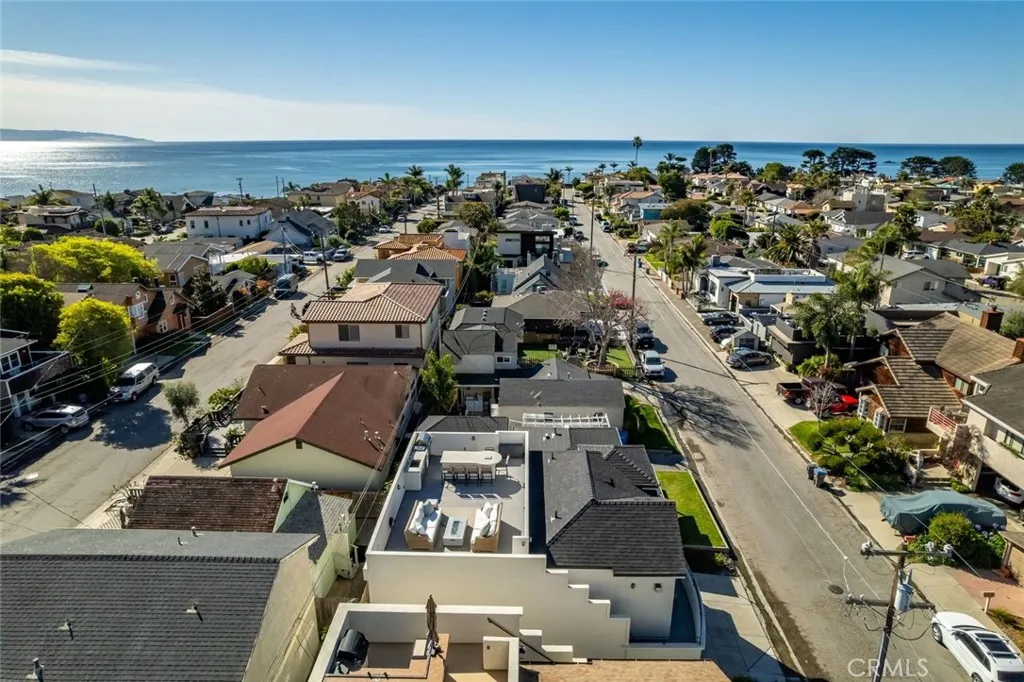 Welcome to coastal living in the heart of Shell Beach. This beautifully maintained 3 bedroom, 3.5 bath home offers a light-filled, flexible floor plan and exceptional indoor-outdoor spaces just moments from the ocean. The main level features an inviting covered entry, warm wood flooring, and a spacious bedroom with adjacent full bathideal for guests or single-level living. A second downstairs bedroom with closet is currently used as a home office, offering versatile space for guests, work, or hobbies. Youll also find a convenient interior laundry room and access to a private side yard with outdoor shower, perfect after beach days. Upstairs, the bright open-concept living area showcases vaulted ceilings, plantation shutters, and a cozy fireplace with stone surround. The updated coastal kitchen is the heart of the home, featuring white cabinetry, stone countertops, tile backsplash, stainless appliances, gas cooktop, and a large island with seating. An adjacent dining area filled with natural light opens to a front balcony for morning coffee and ocean air. A convenient upstairs powder room serves the main living and entertaining areas. The spacious primary suite offers room for a sitting area and includes a spa-like bath with dual vanities, stone counters, walk-in tiled shower, and separate water closet. An additional upstairs bedroom features its own en suite bathroom and access to a private covered balcony, creating a comfortable retreat for guests or family. Multiple outdoor living spaces set this home apart. Exterior stairs lead to a spectacular rooftop deck designed for e