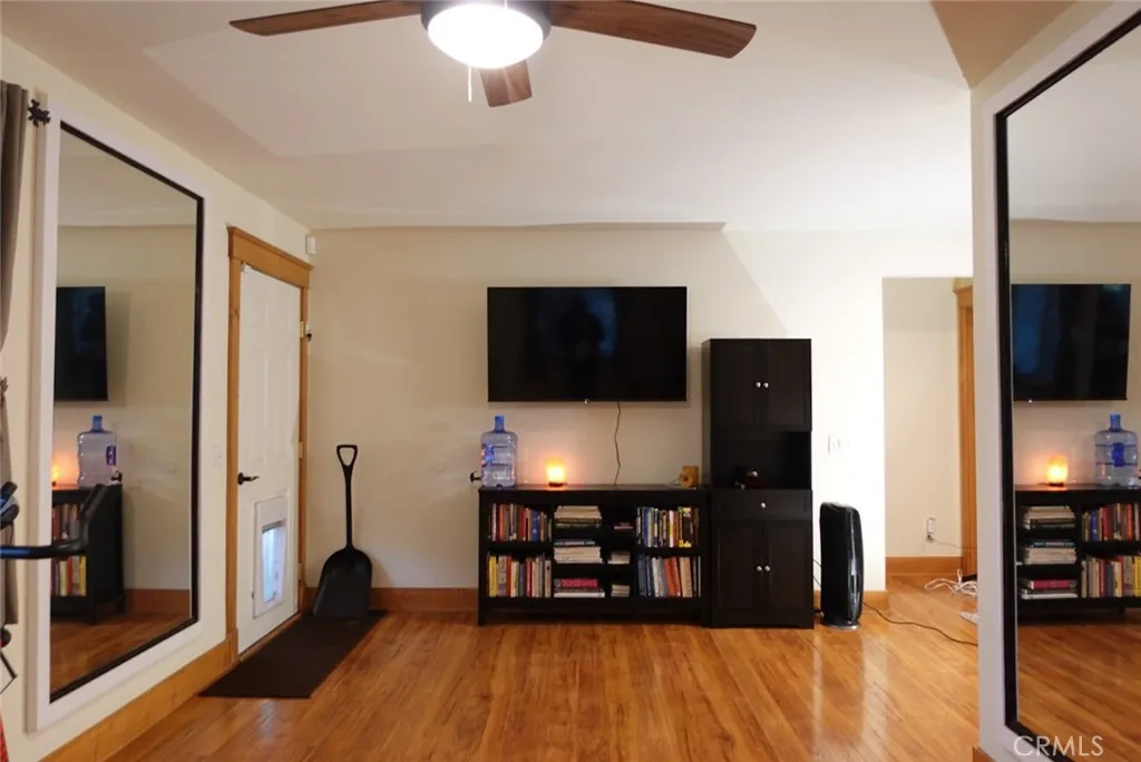 Welcome to this beautiful Crestline home offering the perfect blend of modern comfort and mountain charm. Built in 2008 and located just minutes from Lake Gregory, this 2,028 sqft. residence features a spacious and functional floor plan ideal for everyday living and entertaining. The main level offers a bright living room with fireplace, crown molding, and wood accent walls, a large kitchen with ample counter space, and a bedroom connected to a Jack-and-Jill bathroom with additional access from the dining area. Step outside to an expansive patio and a landscaped backyard with amazing views, creating a peaceful outdoor retreat. The lower level features a versatile secondary living area that can be utilized as a gym, game room, or office, along with three additional bedrooms, a Jack-and-Jill bathroom, and a convenient laundry closet. Additional highlights include a gated yard, private parking, and ample street parking. This turn-key property offers comfort, space, and the tranquility of mountain living.