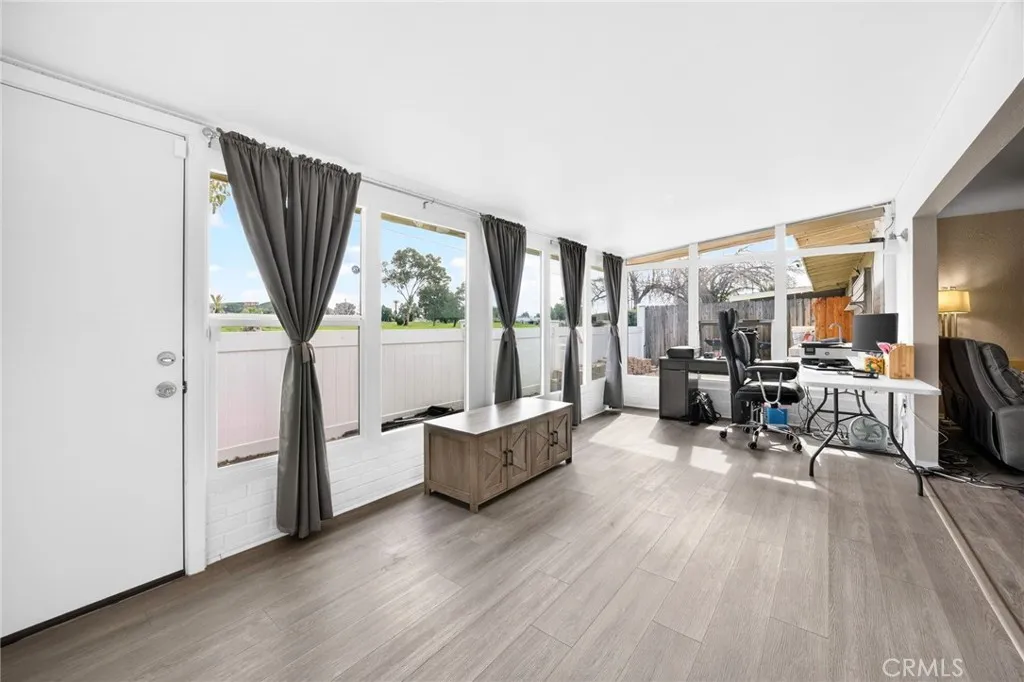 Welcome to this gorgeous and cozy 55+ home located in the heart of Sun City! This recently remodeled, turn-key residence features easy-to-maintain LVP flooring and a newly remodeled, upgraded kitchen equipped with stainless steel appliances. Newer windows enhance energy efficiency and natural light throughout the home. The spacious living room opens to a bright patio sunroom with beautiful views and no rear neighbors, creating the perfect space to relax or entertain. This home offers two bedrooms and two newly remodeled bathrooms, thoughtfully updated for comfort and functionality. Additional highlights include a completely remodeled kitchen, a one-car garage with direct interior access, driveway parking, and a vinyl-fenced backyard with a beautiful viewideal for weekend BBQs, or enjoying your morning coffee outdoors. Situated in the highly desirable Sun City community, residents enjoy access to HOA amenities including a clubhouse, pool, jacuzzi, and a wide variety of social activities. The HOA conveniently includes: water, sewer, trash, and front yard landscaping. This home is within walking distance to Churches, Walgreens, Stater Bros, Banks, the Post Office, Medical Offices, Restaurants, and Shopping Centers. Dont miss the opportunity to tour this beautiful homeschedule your showing today!