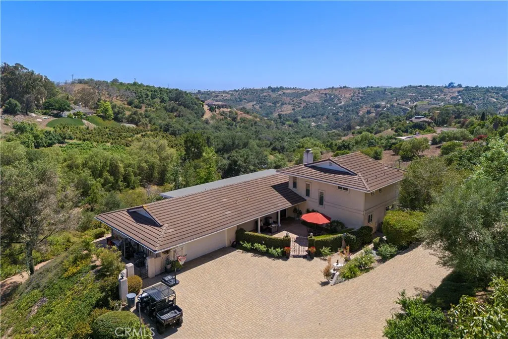 Welcome to this well-maintained 3-bedroom, 2.5-bath 2,624 sq ft home in the hills of Fallbrook. Located on a quiet private road, the 2.07 acre property offers panoramic views, a producing avocado grove, and convenient access to I-15, Temecula, and the coast. The landscaped grounds with a charming wrap around porch show pride of ownership and provide space for ATVs, gardening, or outdoor entertaining. Inside, vaulted wood-beam ceilings, a wood-burning fireplace, and dual-pane windows create a bright, open living space and formal dining room. The updated kitchen offers modern finishes, ample counter space, breakfast nook and a walk-in pantry. The 2 bedrooms downstairs double as an office or guest room. Upstairs you will find the private primary suite with an en-suite bath, custom built-in closets, and direct access to a Trex deck overlooking the groves. Additional features include a large two-car garage with built-in cabinetry, dedicated laundry room, and generous storage throughout. Property highlights: 2.07 acres with a 75-tree producing avocado grove, irrigation set up for up to 150 trees 20 minutes to Old Town Temecula, 30 minutes to the beach Minutes to I-15 and 3 minutes to Monserate Winery Usable land for recreation or entertaining Updated concrete tile roof and HVAC Space to add an ADU for rental or multigenerational living Well-maintained septic system New paver driveway Ideal for those seeking space, privacy, and income potential in a central Fallbrook location. Schedule a showing today!