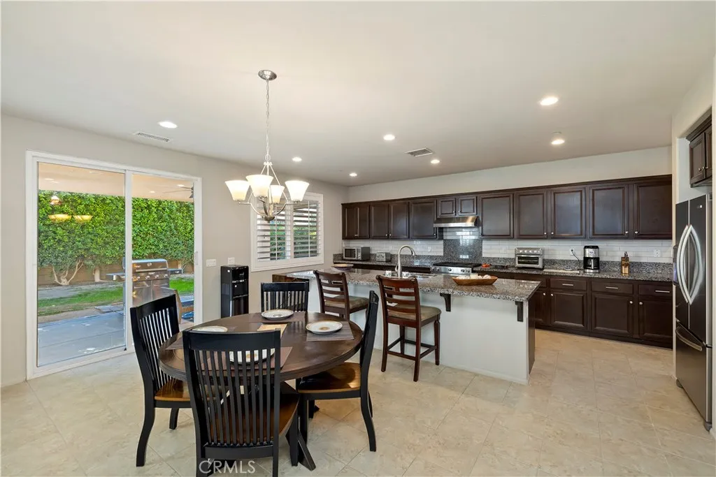 Single story, well maintained home in the gated Palazzo community, perfectly situated on a serene corner lot adjacent to a lush greenbelt. This inviting residence offers a great floor plan with 3 bedrooms, 2.5 bathrooms, plus a den, and spacious living and dining areas that flow seamlessly into a gourmet kitchen featuring granite countertops, ample cabinetry, a walk-in pantry, stainless steel appliances including a full-sized fridge, and a large island perfect for gathering and entertaining. Adjacent to the main living area, a den or office showcases a full wall of custom library-style built-ins. Recessed lighting, plantation style window shutters throughout, and newer ceiling fans enhance the bright, airy feel of the home. Sliding glass doors from the main living area open to a covered patio and a secluded backyard with mature landscaping, creating an effortless connection between indoor and outdoor living and an ideal space for relaxing or entertaining. Just off the kitchen, a dedicated laundry room conveniently located between the kitchen and the garage features a washer and dryer, utility sink, and built-in cabinets for additional storage. As you move down the hallway, the primary suite is tucked into its own private wing, separated from the other bedrooms for added privacy, with dual vanities, a soaking tub, a separate shower, and a spacious walk-in closet. Two additional bedrooms are located in a separate hallway and share a nearby full bathroom, along with a conveniently located guest powder room. The home also offers direct access to the attached two-car garage, whi