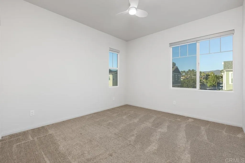 Experience an elevated lifestyle in this nearly-new, energy-efficient masterpiece. This 2-year-old turnkey smart home is a pristine residence packed with high-end upgrades, headlined by a fully PAID solar system, premium window coverings along with a tankless water heater. The open-concept main floor features luxury laminate flooring and a gourmet kitchen with a massive Quartz island, custom tile backsplash, and full stainless steel appliance package. Upstairs, find a versatile layout with luscious carpet, ceiling fans in all bedrooms, and a convenient laundry room. The Primary Suite offers dual vanities, a separate soaking tub/shower, and a walk-in closet. Fully tech-enabled with Schlage keyless entry, Eero router, and Ecobee thermostat. Private vinyl-fenced yard on one of the biggest lots in the community with finished hardscape; HOA maintains front landscaping. Located in the Rancho Buena Vista HS district with EZ access to Hwy 78, I-5, and I-15. Come see it today!