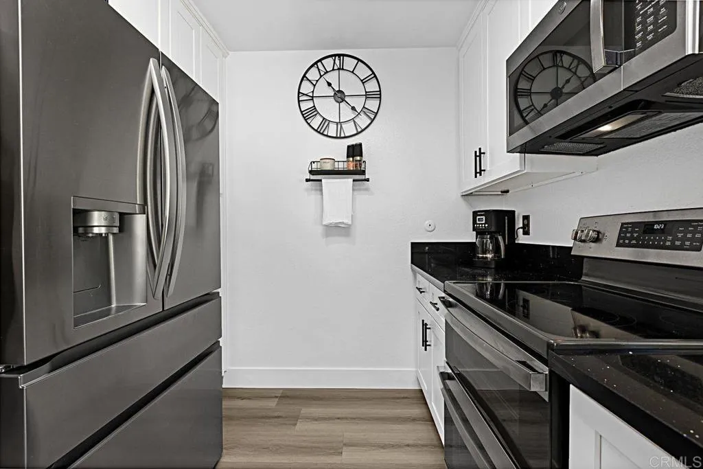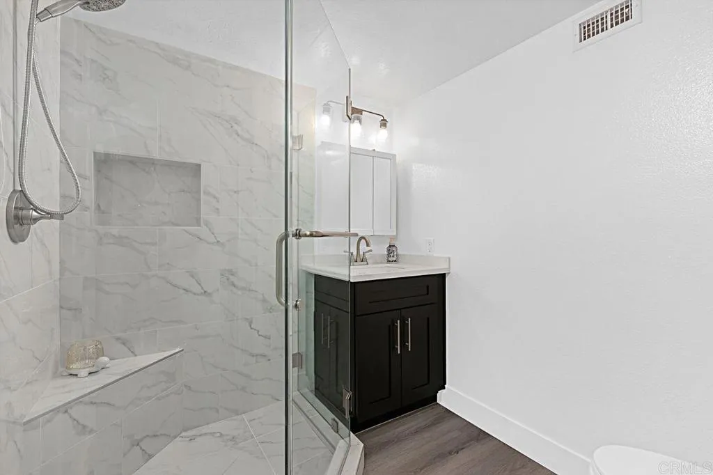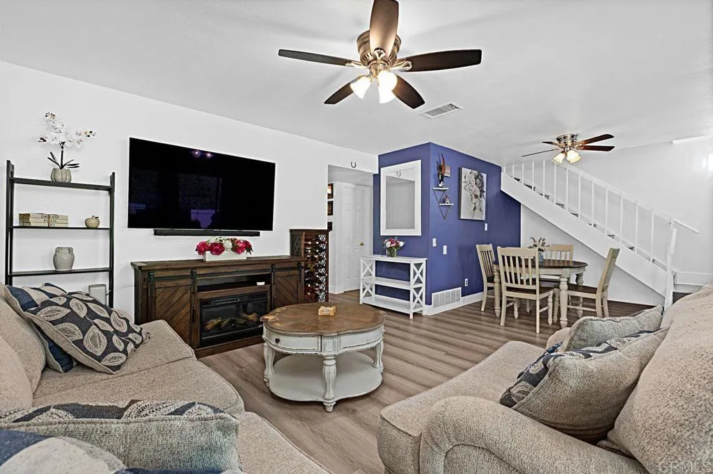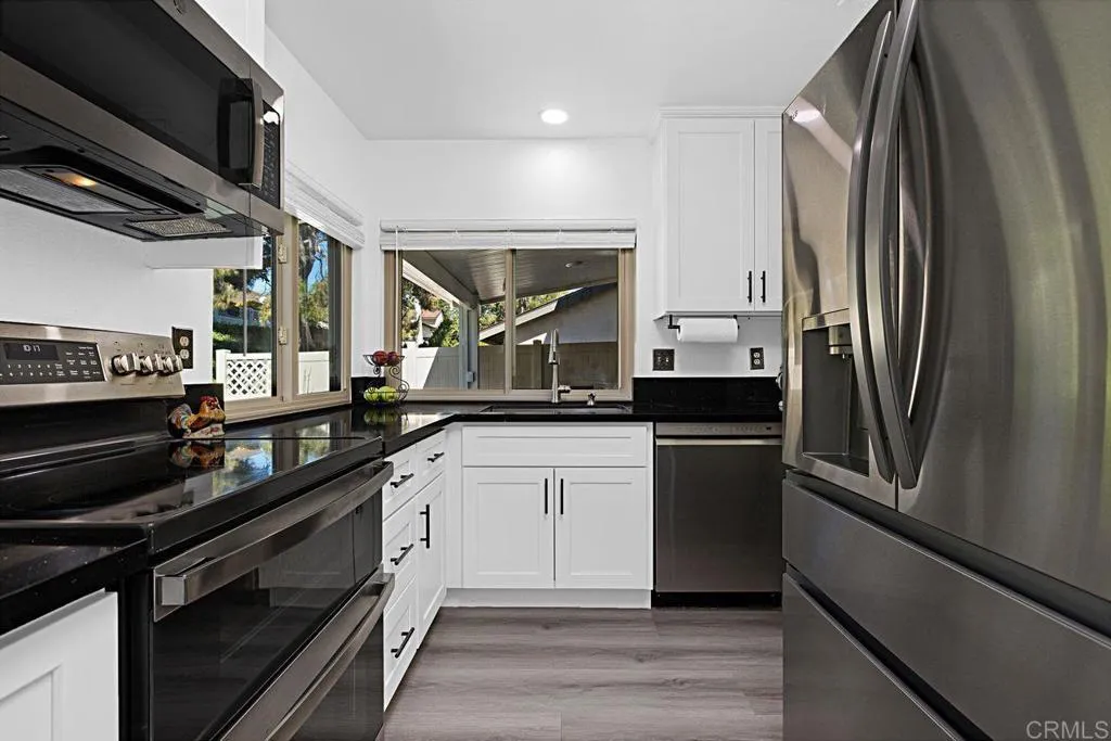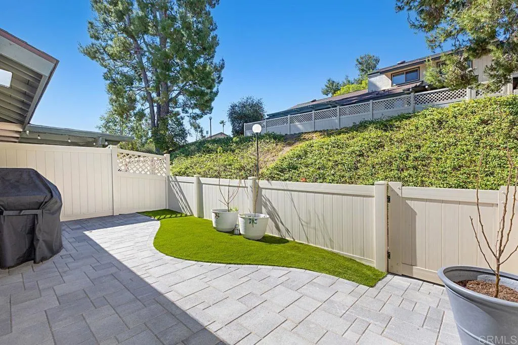 Turnkey Upgraded Home with Private Yard - A beautifully renovated home in a desirable Escondido community, offering modern upgrades, thoughtful design, and seamless indoor-outdoor living. The home has been meticulously updated throughout, showcasing brand-new water-resistant laminate wood flooring, fresh interior paint, and stylish finishes that create a bright, welcoming atmosphere. This exceptional residence features three bedrooms, including a highly desirable ground-floor bedroom that can serve as a private home office or comfortable guest room, perfect for todays flexible lifestyle. Two fully remodeled bathrooms with custom tile finishes are conveniently located on each level. The main living spaces are designed for both comfort and functionality, featuring a spacious living room that flows effortlessly to the outdoors, creating a true indoor-outdoor living experience. A dedicated dining area complements the space, ideal for both everyday living and entertaining. The beautifully reimagined kitchen is positioned to overlook the backyard, allowing for natural light and a connection to the outdoor space. It features crisp white custom cabinetry, sleek black crystal quartz countertops, and stainless-steel appliances. Perfect for cooking while staying connected to gatherings inside and out. Step outside to a newly transformed backyard designed for low maintenance and year-round enjoyment. Complete with pavers, turf, and a new patio cover with inset lighting, dimmer controls, and multiple electrical outlets. This outdoor space is ideal for relaxing, BBQs or hosting gathering