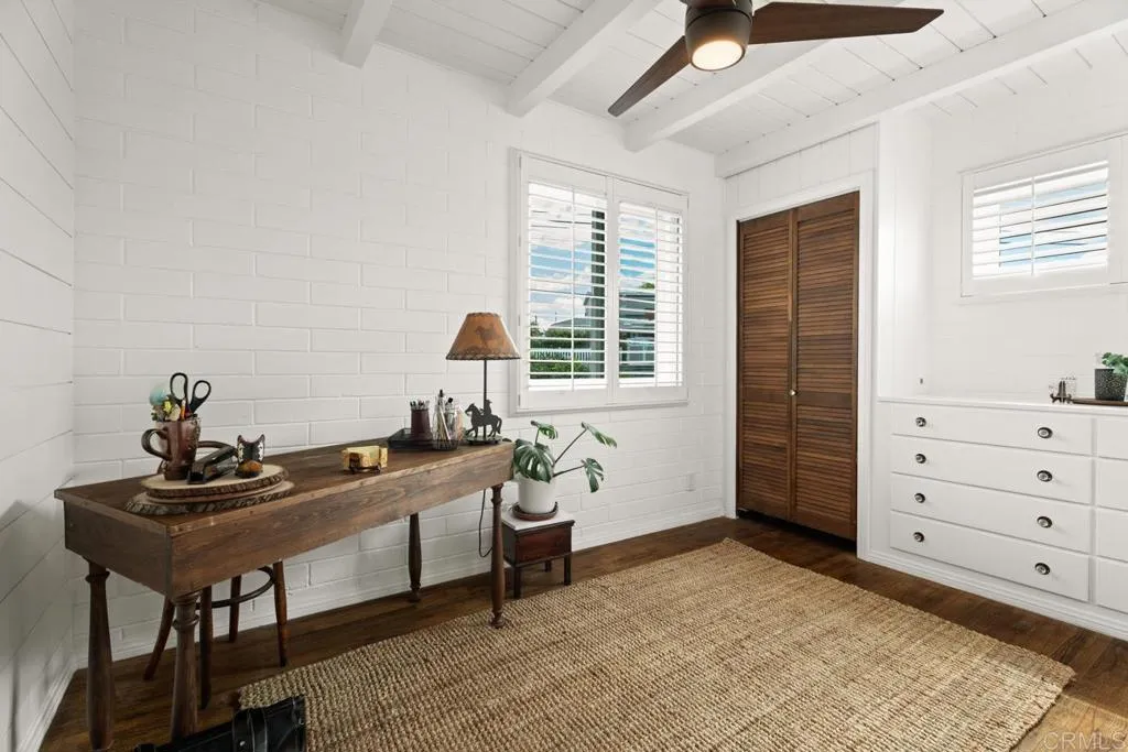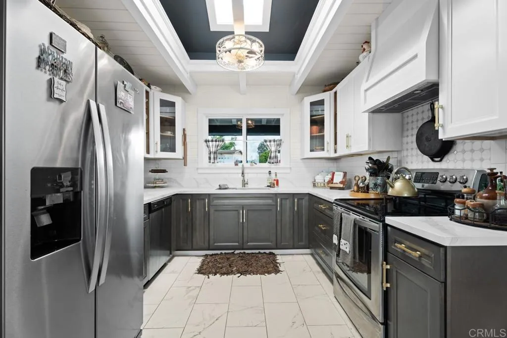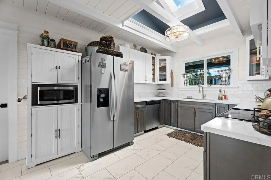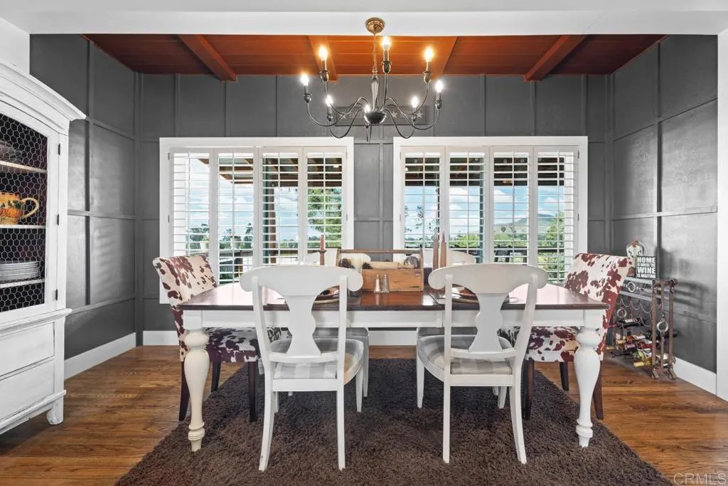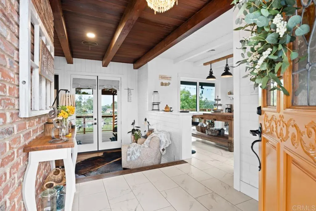 Experience Fletcher Hills at its finest. From the moment you enter the circular drive, the tranquil succulent & wildflower garden creates unforgettable curb appeal. This fully remodeled pristine home blends timeless elegance with modern luxury. Rich, original hardwood floors, soaring wood beamed ceilings, & Milgard windows with plantation shutters create a warm sophisticated ambience, while bringing in plenty of natural light. A cozy brick fireplace completes the feel of this comfortable living space. The dream kitchen features a grand farmhouse island, breakfast counter for two, quartz countertops & premium finishes, opening seamlessly to a barbecue area & a fabulous 58 viewing deck perfect for watching the sunsets & ocean views, or outdoor entertaining. Retreat to the luxury primary suite with fireplace, rustic beam, spa inspired Italian marble shower with soothing rain shower head, dual vanities, multiple expansive walk-in closets, & a private patio for your morning coffee. The grounds are an entertainers paradise: lush lawns, Meyer lemon, plum, apple, & nectarine fruit trees, & a prize-winning rose garden. A spacious , 1 bedroom detached guest house features a wall of picture windows, private deck & driveway, completing this versatile property ideal for guests, multigenerational living, or rental income. This home has it ALL! This isnt just a home, Its the lifestyle you dream of! Attention to detail & thoughtful design in every room: Chandeliers, modern ceiling fans & custom lighting, making this place a true show stopper.