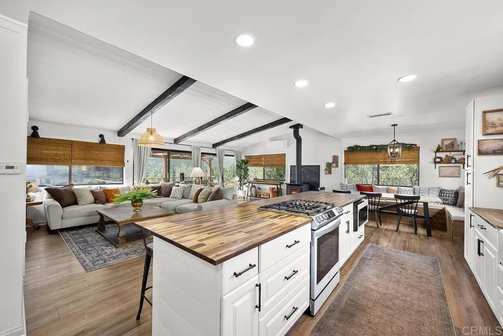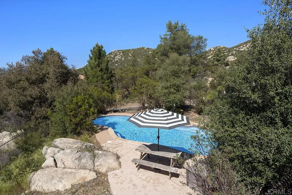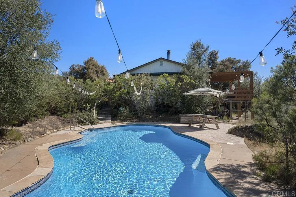 Views Galore!!! This charming home is Perched to capture sweeping, unobstructed views across all of Pine Valley, this exceptional property offers a rare blend of refined modern farmhouse design, resort-style living, and multi-unit versatility. The main residence has been thoughtfully reimagined with elevated finishes throughoutfeaturing wide-plank flooring, fresh interior and exterior paint, upgraded electrical, new roof and designer lighting that creates a warm yet sophisticated ambiance. At the heart of the home, the chefs kitchen is both functional and striking, showcasing custom cabinetry, a farmhouse sink, brick backsplash, modern appliances, and an inviting breakfast nook that flows seamlessly into the living space. A built-in entertainment feature and faux beam accents add character while maintaining a clean, upscale aesthetic. Step outside to a true lifestyle settingan expansive view deck and pool area designed to take full advantage of the breathtaking panoramic surroundings, offering the perfect backdrop for entertaining, relaxing, or enjoying serene sunset evenings over the valley. The property also features a fully detached one-bedroom, one-bath guest residence complete with its own kitchenette and laundryideal for multigenerational living, private guest accommodations, or income-producing potential. Additional highlights include owned solar for energy efficiency, a mini-split system, upgraded wood stove, garage workshop, outdoor shed, pantry, and even a custom treehouseblending luxury with functionality and charm. A truly rare offering combining elevated design